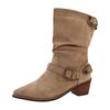 Fashion Women's Block Heel Single Boots Autumn New Pointed Toe Metal Buckle Anti-slip Wear-resistant Mid-leg Boots