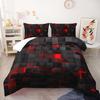 Conjunto de Capa de Edredom com Grade Geométrica Tamanho Queen Xadrez Vermelho e Preto Capa de Roupa de Cama Abstrata Moderna Conjuntos de Cama Para Todas as Estações
