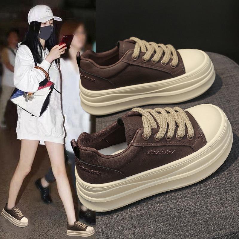 The first layer of cowhide casual leather board shoes women's shoes autumn and winter new small thick-soled heightening casual sports shoes