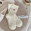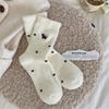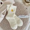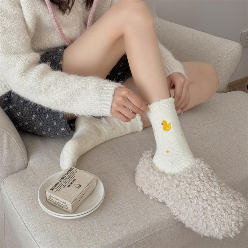 Meias grossas de tornozelo para outono e inverno, cor creme, de lã australiana, com bordado de patinho amarelo de desenho animado, macias e quentes para dormir em casa