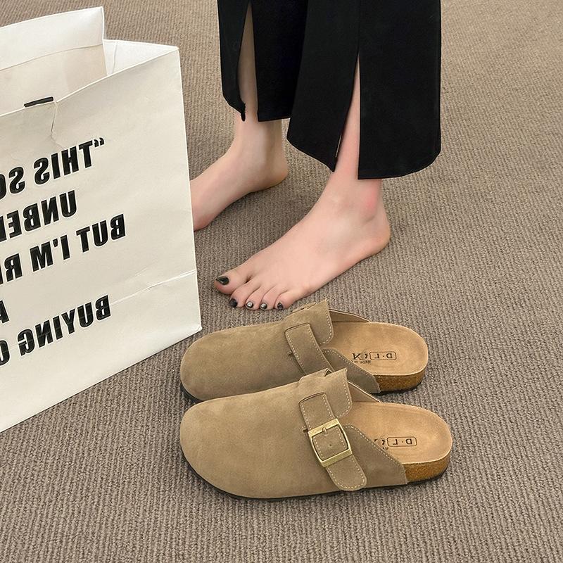 Non-slip bag head half slippers women's suede retro flat-soled single shoes versatile outer wear new spring and autumn season