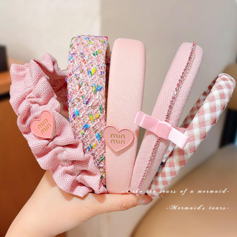 Faixa de Cabelo Rosa Retro com Coroa Alta Antiderrapante para Meninas - Coleção Verão 2024
