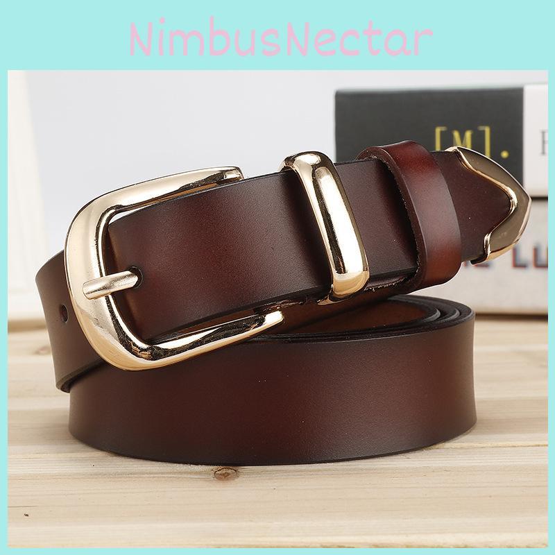 This genuine leather women's belt features a durable two-layer cowhide construction, providing reliable support and style. It measures 2-4cm in width and is available in lengths of 105cm, 110cm, 115cm, and 120cm, with an alloy pin buckle for secure fastening. Suitable for casual or office wear, it enhances everyday outfits. Easy to care for, wipe clean with a damp cloth.