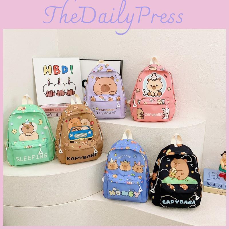 This children's backpack features a playful capybara cartoon print, crafted from durable nylon material with a polyester lining. Measuring approximately 25*11*31cm, it offers reliable storage for preschoolers. Its ergonomic, curved shoulder straps support comfortable wear during school activities. Suitable for kindergarten use, it supports weight distribution and reduces load strain. Easy to maintain, wipe clean with a damp cloth for daily use.