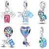 Original Copper Charms Earth Plane Ticket Suitcase Camera Beads Pendant Fit Bracelet Diy Fine Women Jewelry Gift