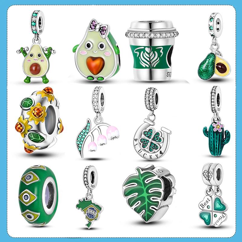Pingente Abacate Série Verde Cobre Charms Cacto Contas Serve Pulseira Original Mulheres Joias DIY