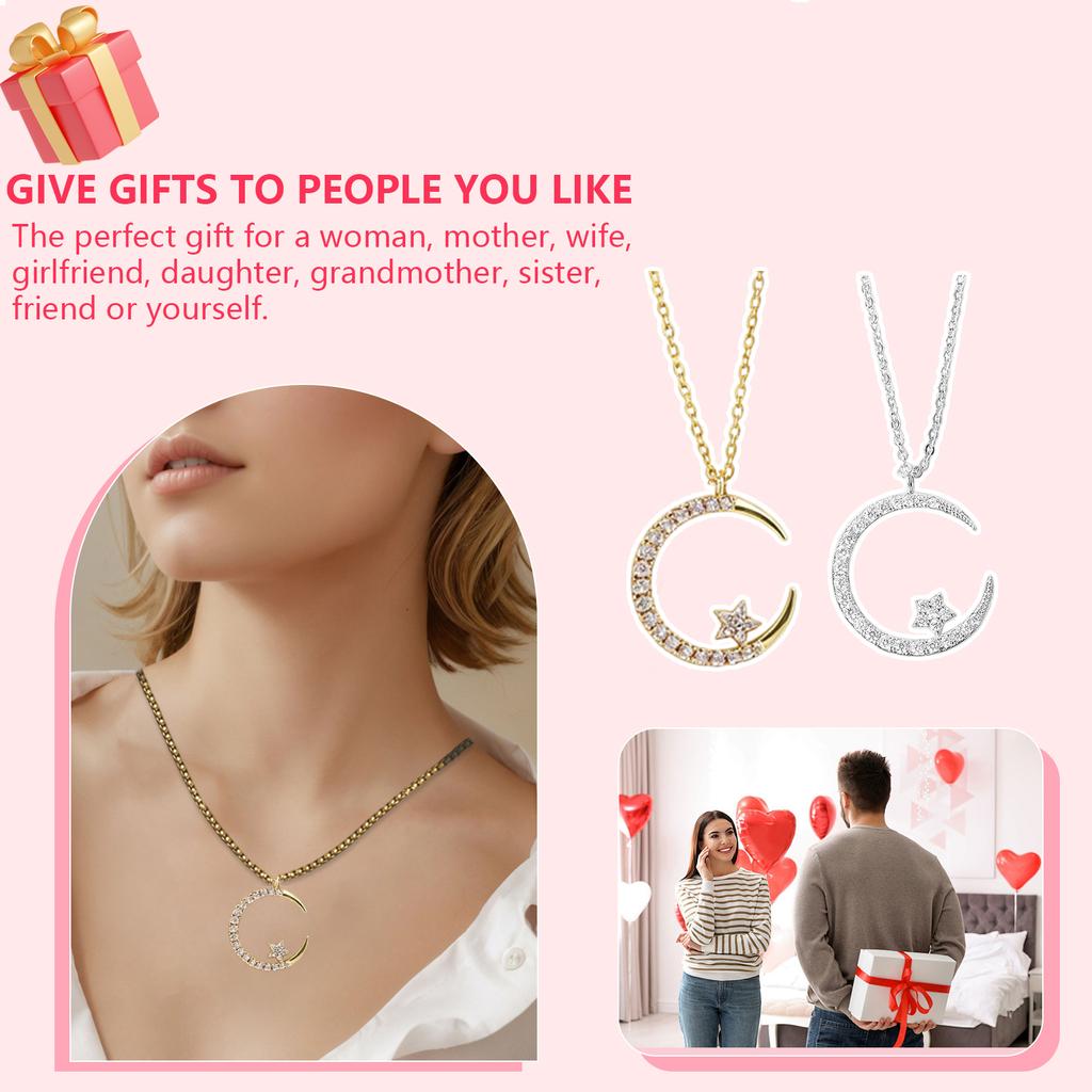Golden Star And Moon Necklace For Women, Super Sparkling Full Diamond Zirconia Collarbone Necklace Accessories