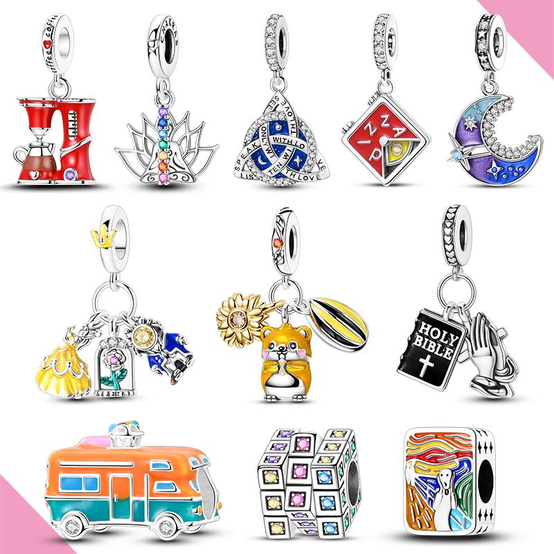 Copper Charms Beads For Woman Fit Original Bracelet Diy Moon Flower Rose Fine Jewelry