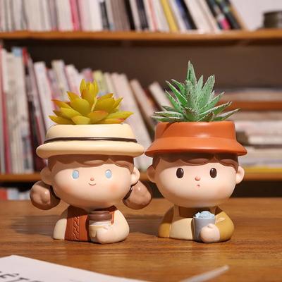 Vaso de Planta Menina e Menino Desenho Animado, Vasos de Flores Fofos para Plantas Suculentas, Estatuetas Decorativas para Jardim de Fadas, Decoração de Mesa para Casa