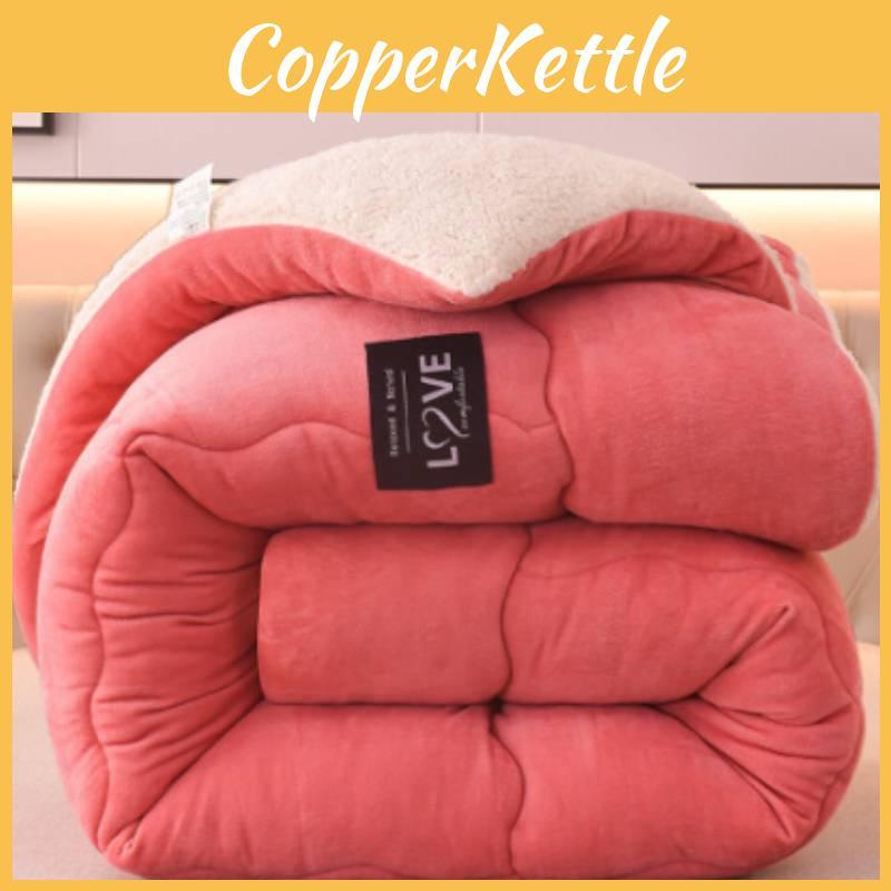 This winter quilt features a thick, plush design. Its brushed and quilted construction ensures warmth and durability. Ideal for winter nights, it supports restful sleep and maintains comfort in cold environments. Wipe clean with a damp cloth for maintenance.