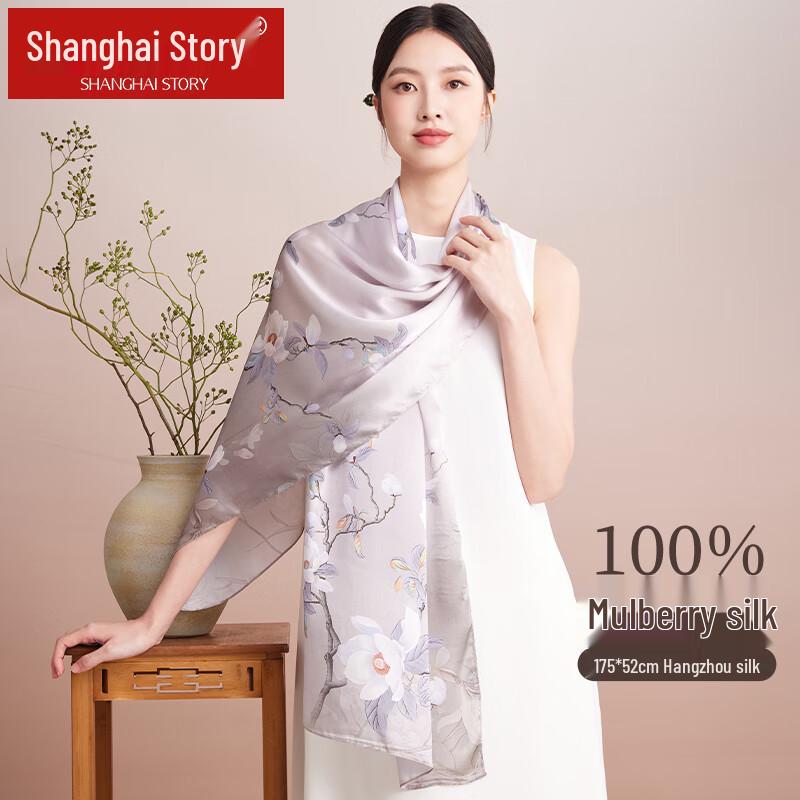 Shanghai Story Women's Floral Mulberry Silk Scarf