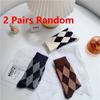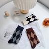 Autumn and Winter Models Diamond Grid Socks Girls' Fashion Retro Classic Tube Socks Tide Pile Socks