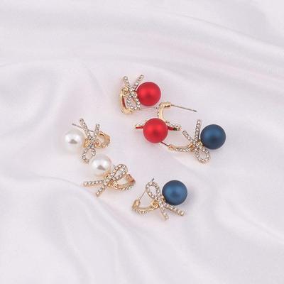 1 Par Brincos Femininos Strass Laço Vermelho Pérola Falsa Brincos de Pino Ano Novo Brincos de Pino para Festa de Baile Namoro Presente de Ano Novo