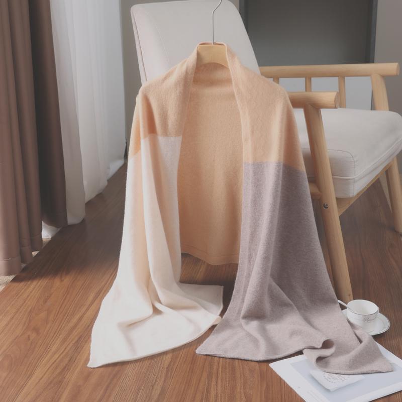 100% Cashmere Knitted Scarf Soft Warm Contrast Trim Fashion Accessory Winter Wrap Versatile Stylish Daily Wear Elegant Gift