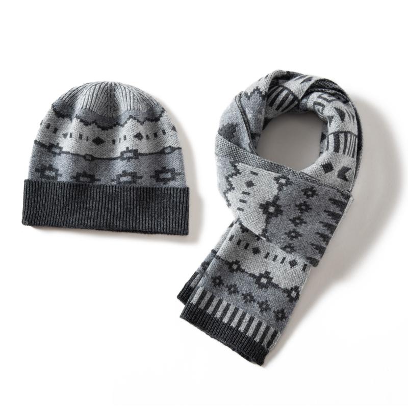 Women's 100% Cashmere Diamond Pattern Scarf and Hat Set Winter Thickened Multi FunctionEar-Protecting Knitted Two-Piece Ensemble