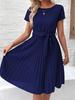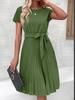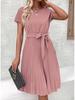 Vestido Feminino Europeu e Americano de Verão 2025 com Renda de Amarrar Plissado - Cor Sólida.