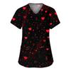 Moda feminina com decote em V manga curta workwear com bolsos estampados tops