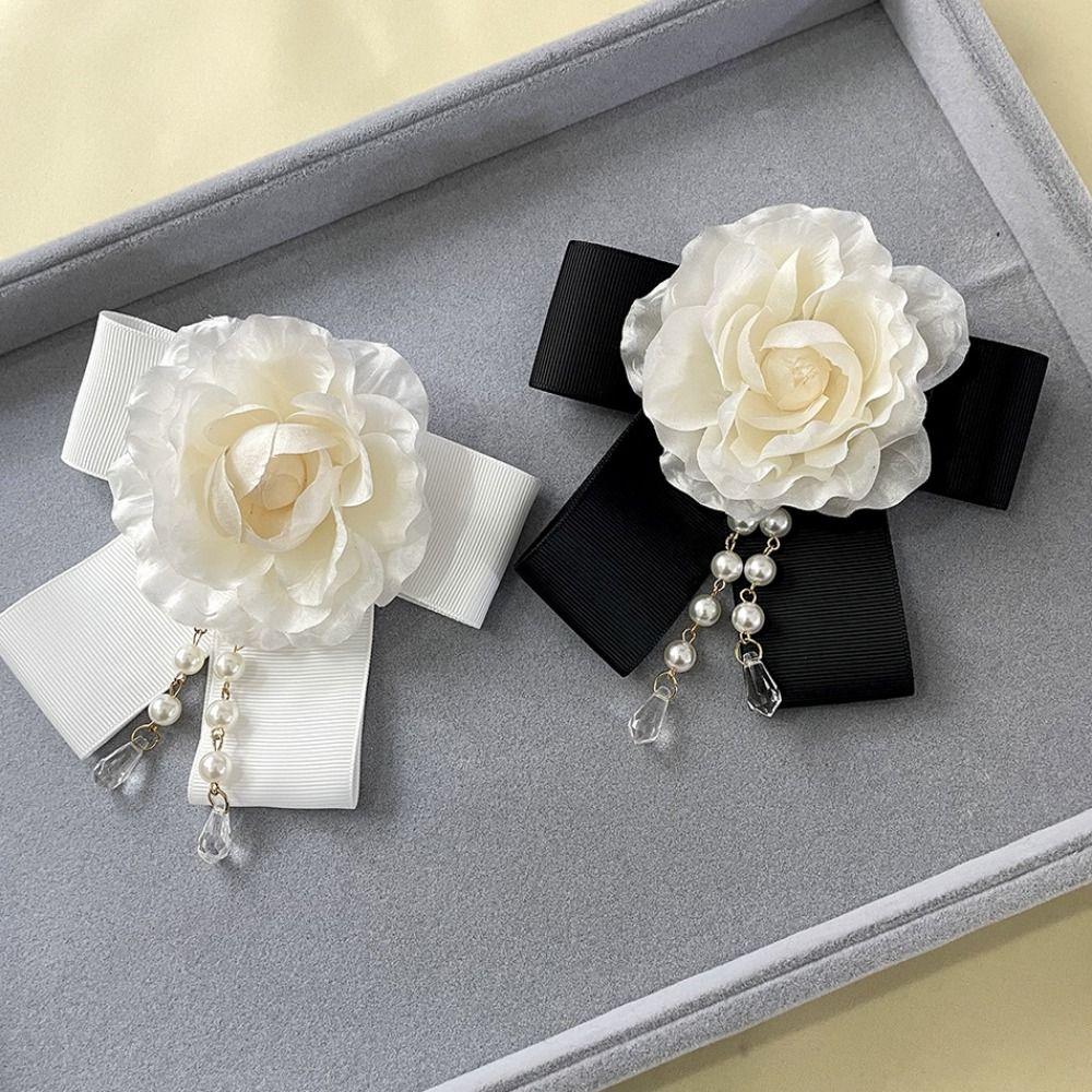 Black Rhinestone Memorial Black Bow Brooch Camellia Vintage Pin For Funerals and Mourning