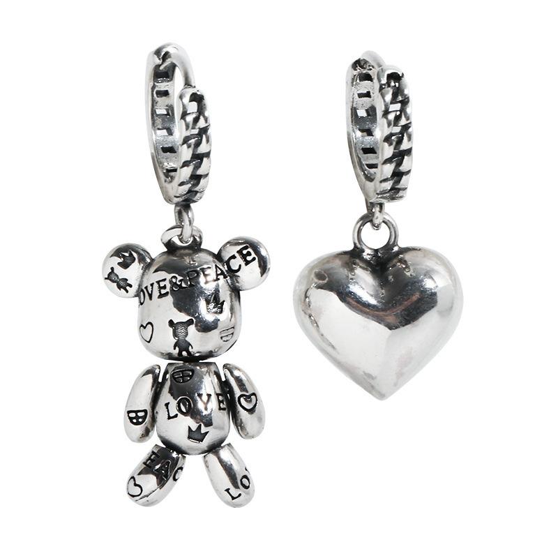 2pcs Antique Silver-plated Earrings For Both Men And Women Vintage Style Asymmetric Unique Bear Pendant Jewelry