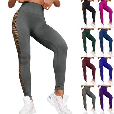 Calças de Yoga Femininas de Cor Sólida Vazadas Respiráveis Elásticas Cintura Alta Levanta Bumbum Calças Esportivas de Fitness