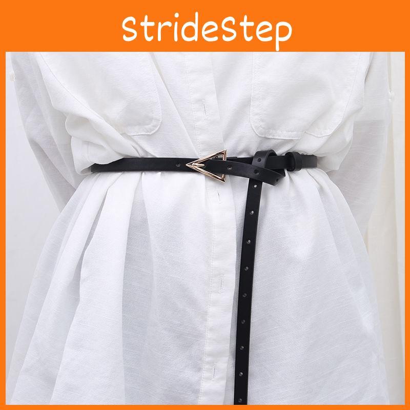 Designed with a minimalist approach, these belts embody a sleek and refined aesthetic that pairs beautifully with both casual and formal attire. Whether you're dressing up for a special occasion or simply enhancing your everyday look, these belts add a touch of sophistication and class. The triangular gold buckle is not only a standout feature but also an emblem of timeless elegance, making these accessories a perfect addition to your wardrobe.