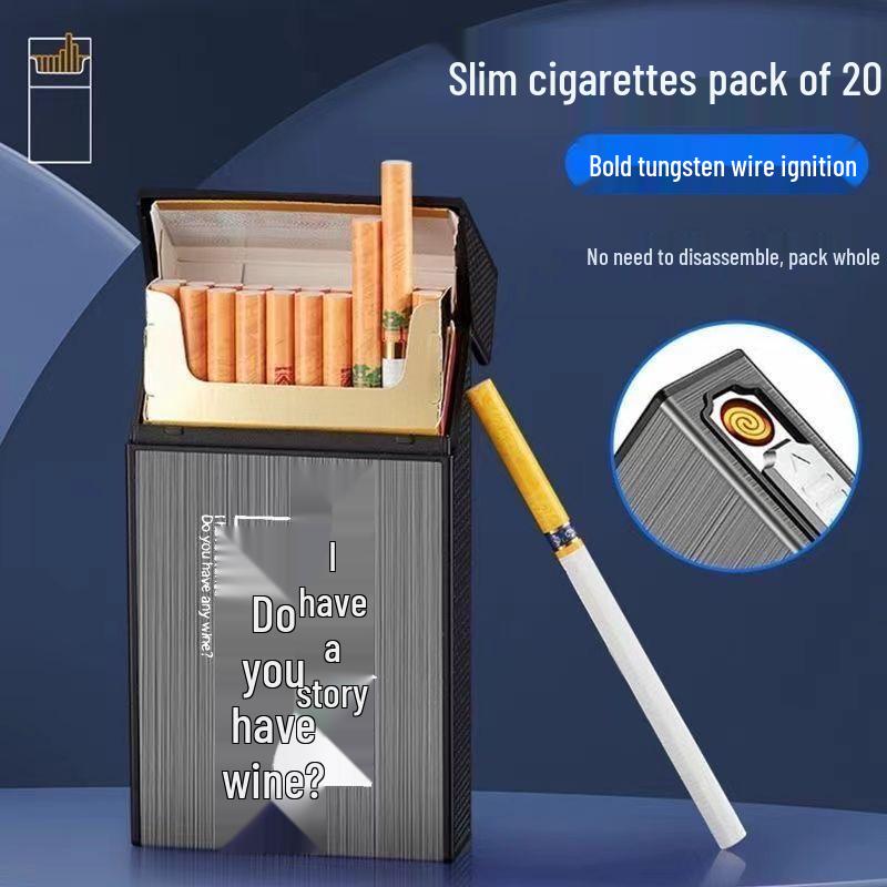 Slim 20-Piece Cigarette Case with Rechargeable Lighter - Moisture-Proof, Pressure-Resistant Flip-Top Design.
