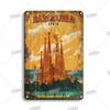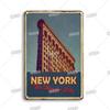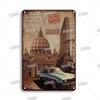 INEED Decor Sinal de Lata de Metal Vintage Paisagem Urbana Nova York Londres Itália Pôster Retrô Cenário de Viagem Adesivos de Arte de Parede Perf