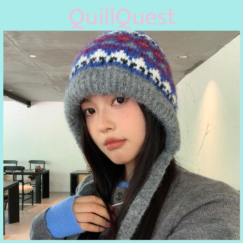 Retro Colorblock Beanie Hat For Women Winter Warmth And Earmuff Protection