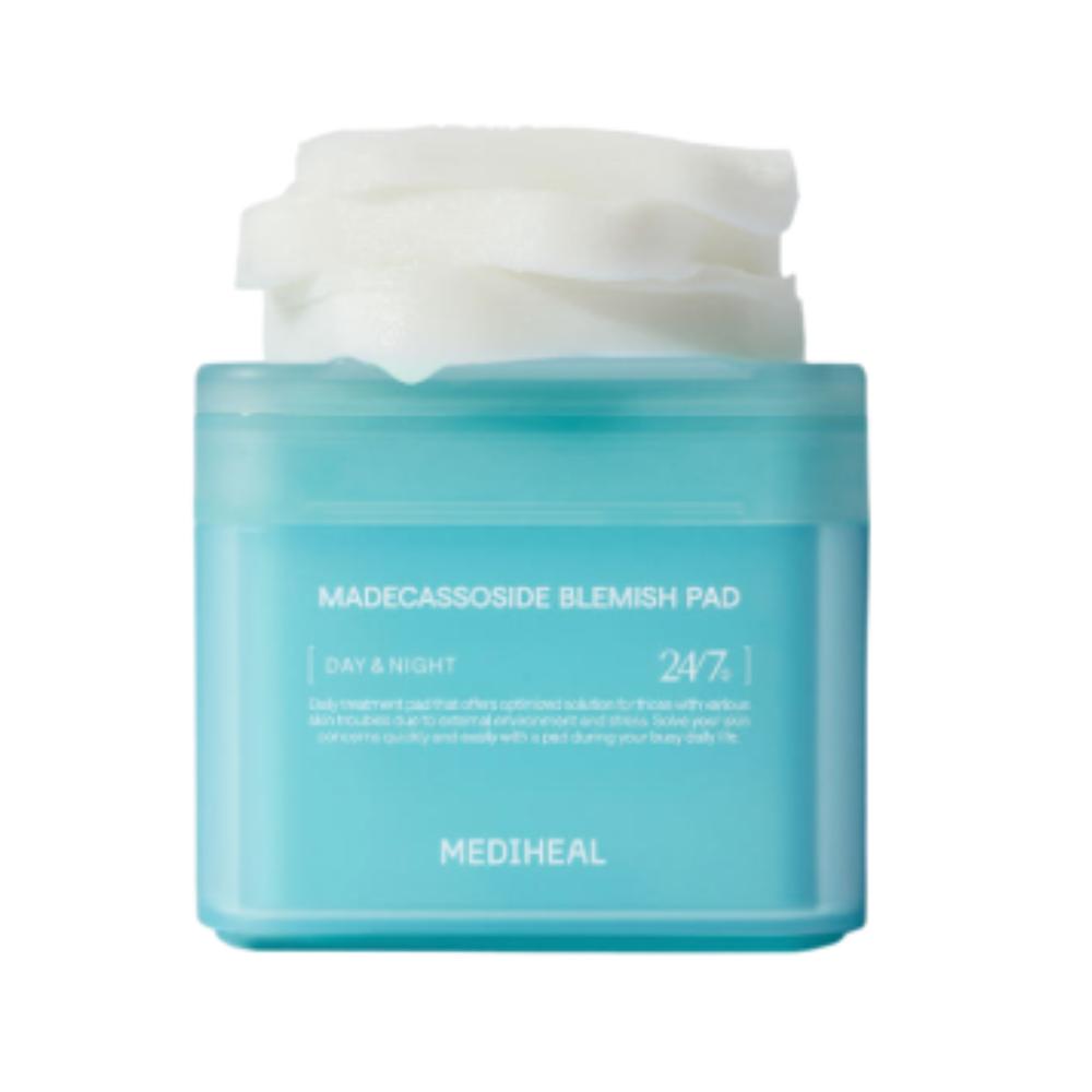 A pack of 100 Mediheal Madecassoside-infused pads designed to calm irritation, support skin barrier recovery, and help reduce the appearance of scars and blemishes.