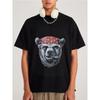 Bear Head Bandana T Shirt White Bear with Red Skull Bandana and Cigar Graphic Streetwear Casual Wear