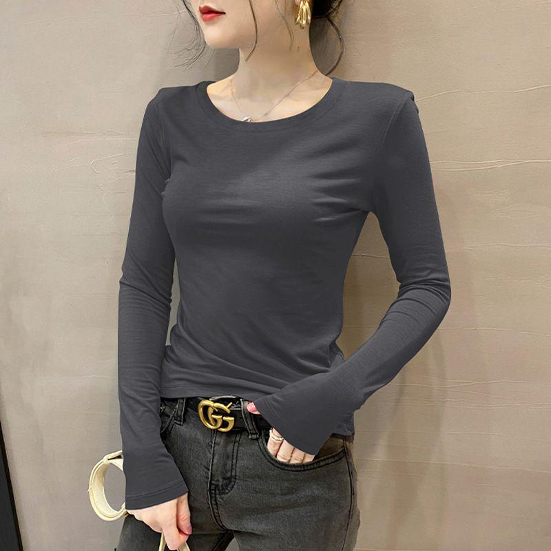 Esta camisa feminina cinza escuro de corte slim é perfeita para as estações de primavera, outono e inverno em 2025. Confeccionado em tecido plano, oferece um caimento elegante e confortável.. As mangas compridas proporcionam calor e estilo, enquanto o decote redondo adiciona um toque clássico.. Seu design minimalista o torna versátil, adequado tanto para ocasiões casuais quanto semiformais.