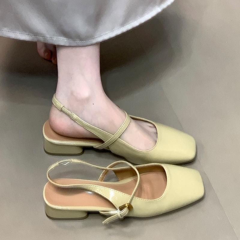 Fashion 2025 French Bag Head Mary Jane Sandals Women's One-word Buckle Belt Rear Empty Temperament Single Shoes