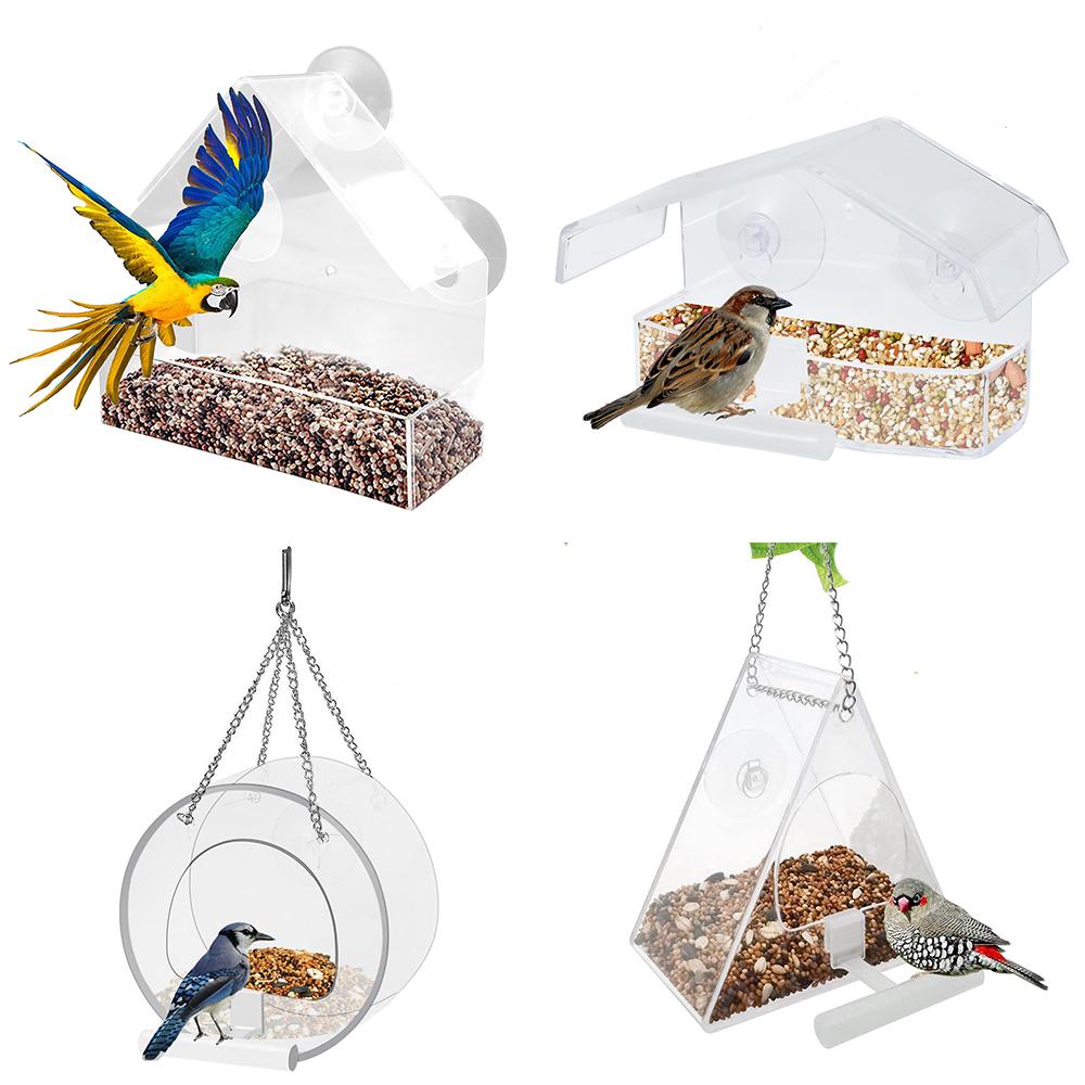 Alimentador de Pássaros com Ventosa e Suporte Pendurado Acrílico Transparente Casa Gaiola de Alimentação para Vidro de Janela de Casa Recipiente para Comida de Pássaros Novo