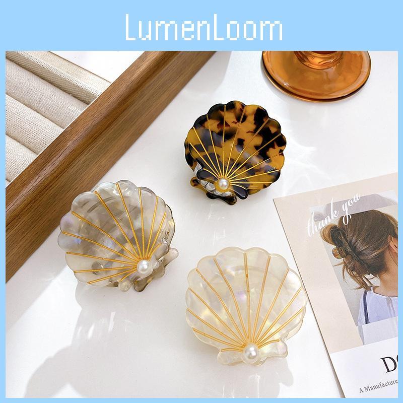 Presilha de Cabelo Versátil de Acetato com Design Elegante de Concha e Pérolas para Penteados da Moda