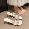 Fashion New Luxury Crystal Butterfly Sandals Women Summer Fashionable Clear Heel Wedding Party Shoes Woman Clip Toe Thick Heeled Sandals