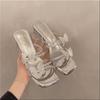 Fashion Crystal Butterfly Straight Strap Sandals Summer New Square Toe Open Toe Pull-in Foot Non-slip Clear Square Heel Cool Mopping