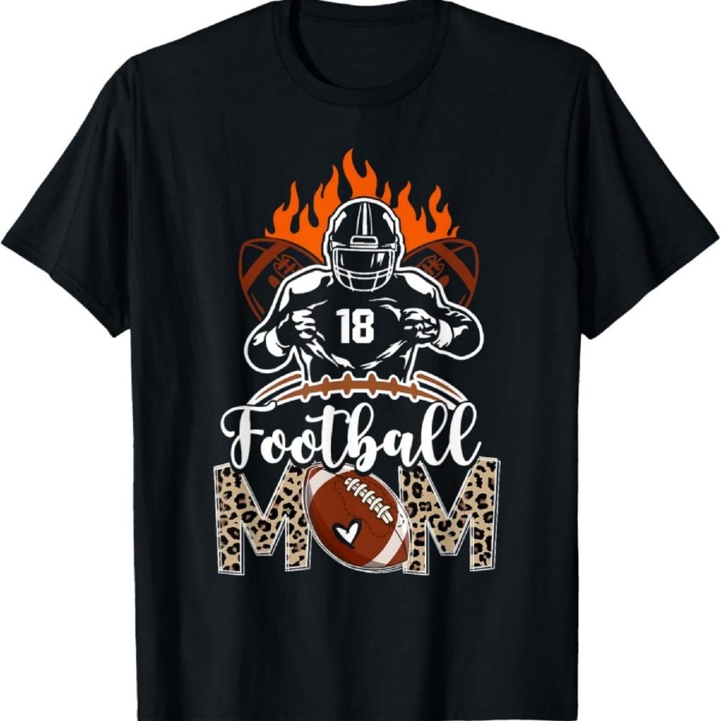 Custom American Football Mom Players Number 18 Game Day T-Shirt
