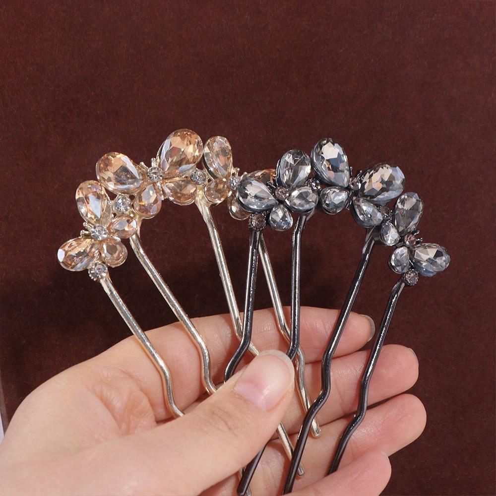Geometric Toothed Insert Comb Rhinestone U-shaped Hair Clip Fashion Butterfly Hairpin Party