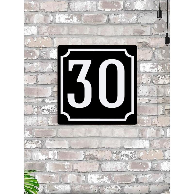 House Number 30 Classic Black Metal Sign 20x20cm, Modern Door Wall Decor