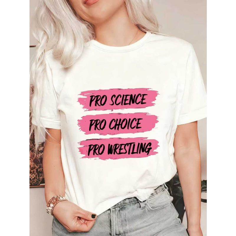 Camiseta Oversized Preta Pro Ciência Pro Escolha Pro Wrestling Estampada Roupa Casual Para Mulheres