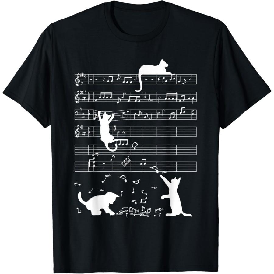 Cute Cat Kitty Playing Music Clef Piano Musician Art T-Shirt