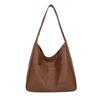 Solid Color Bucket Shoulder Bag Large Capacity Women Handbag Simple PU Leather Tote Bag Commute