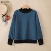 ZANZEA Women Casual Round Neck Patchwork Long Sleeve Pullover Sweatshirts