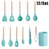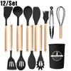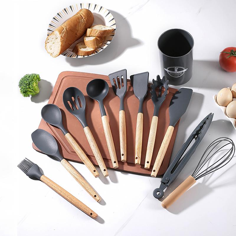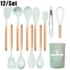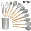 Conjunto de 12 Utensílios de Cozinha com Cabo de Madeira, Silicone Resistente ao Calor, Anti-riscos e Livre de BPA