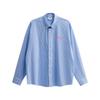 Men's American Retro Letter Print Striped Long-Sleeved Shirt for Men and Women, Blue Couple's Lazy Casual Sun Protection Shirt