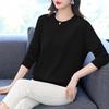 Suéter de malha feminino para mães de meia idade e idosas, suéter solto e emagrecedor com gola redonda, base suéter