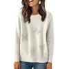 Suéter de Malha Feminino Fashion Color Sólido Gola Redonda Manga Longa Solto Base com Borboleta de Strass