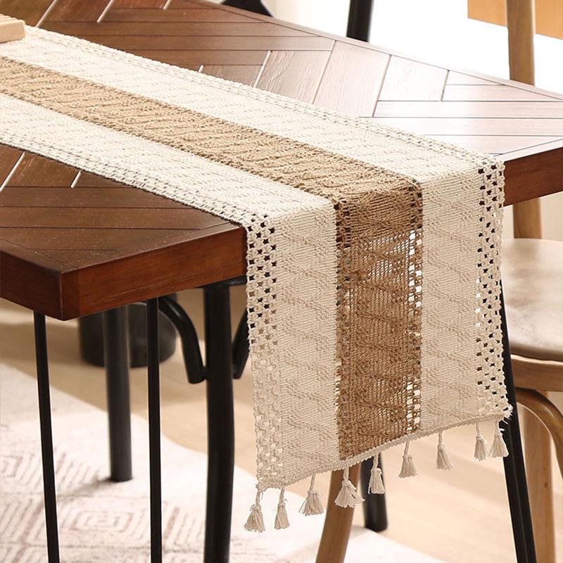 Caminho de mesa com borlas em algodão e linho estilo étnico - Decoração leve e luxuosa para festivais