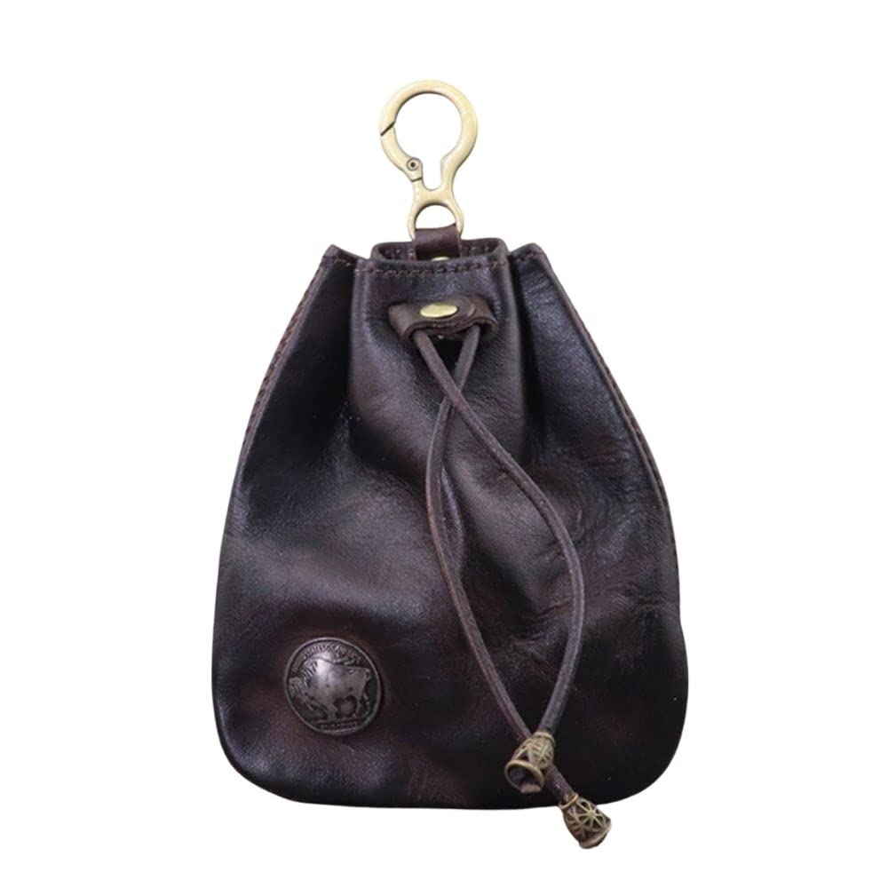 PLEAVIT Carteira Masculina de Couro com Cordão e Mosquetão (Café)