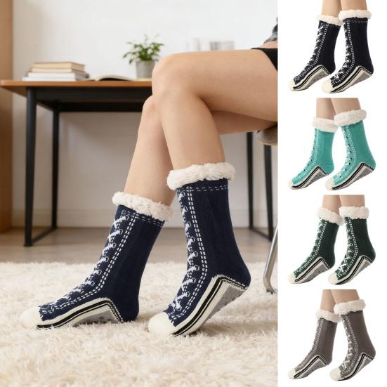 1 Par Meias de Dormir Solas Aderentes de Silicone Antiderrapante Meias de Cano Médio para Chão Forro de Lã Espessado Meias de Interior